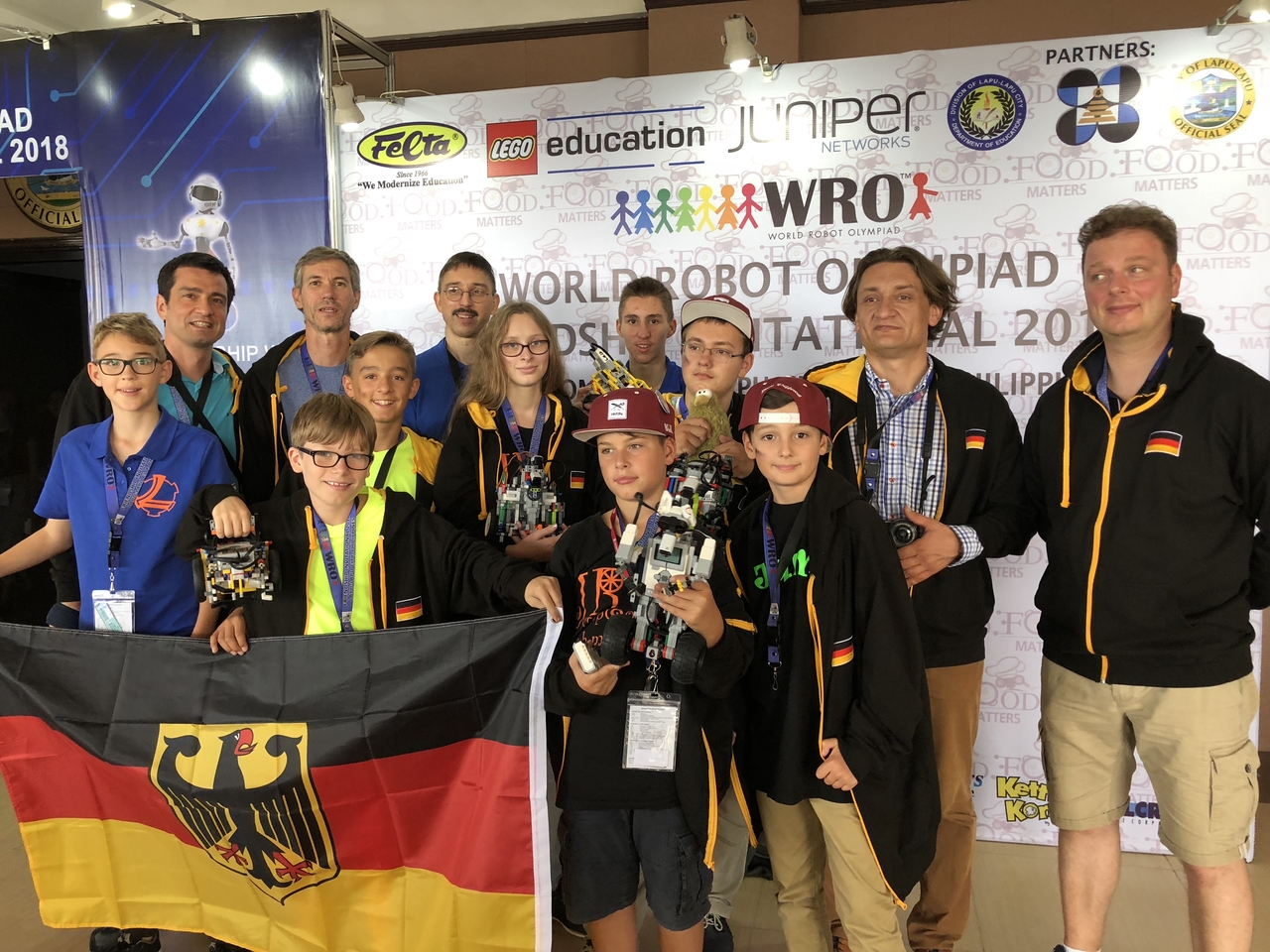 Nachdem wir 2018 zum zweiten Mal den Regionalwettbewerb in Offenbach gewonnen hatten durften wir dieses Jahr wieder in das Deutschlandfinale einziehen. Nach dem ersten Wettkampftag lagen wir noch auf Platz eins in der Kategorie Regular Elementary. Da die anderen Teams ihre Leistung am zweiten Tag doch noch abrufen konnten, vielen wir auf Platz 5 zurück. Schade, Philippinen knapp verpasst – dachten wir.