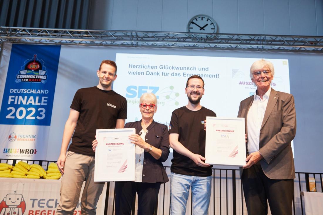 Im Rahmen des Deutschlandfinales der World Robot Olympiad am 16. und 17. Juni 2023 wurden das SFZ Region Freiburg gemeinsam mit der Gisela und Erwin Sick Stiftung als WRO-Partnerinnen und Partner der Saison ausgezeichnet.