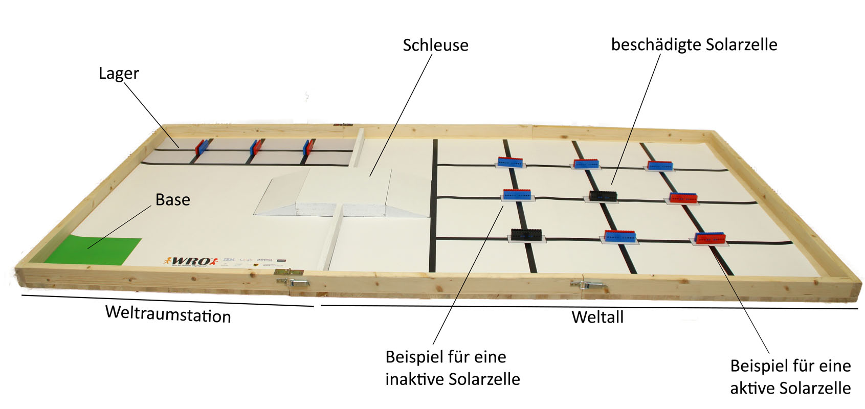 Bei der diesjährigen Aufgabe der Altersklasse Senior baut und programmiert ihr einen Roboter, der den Astronauten bei der Wartung der Solarzellen behilflich ist und beschädigte Solarmodule austauscht.