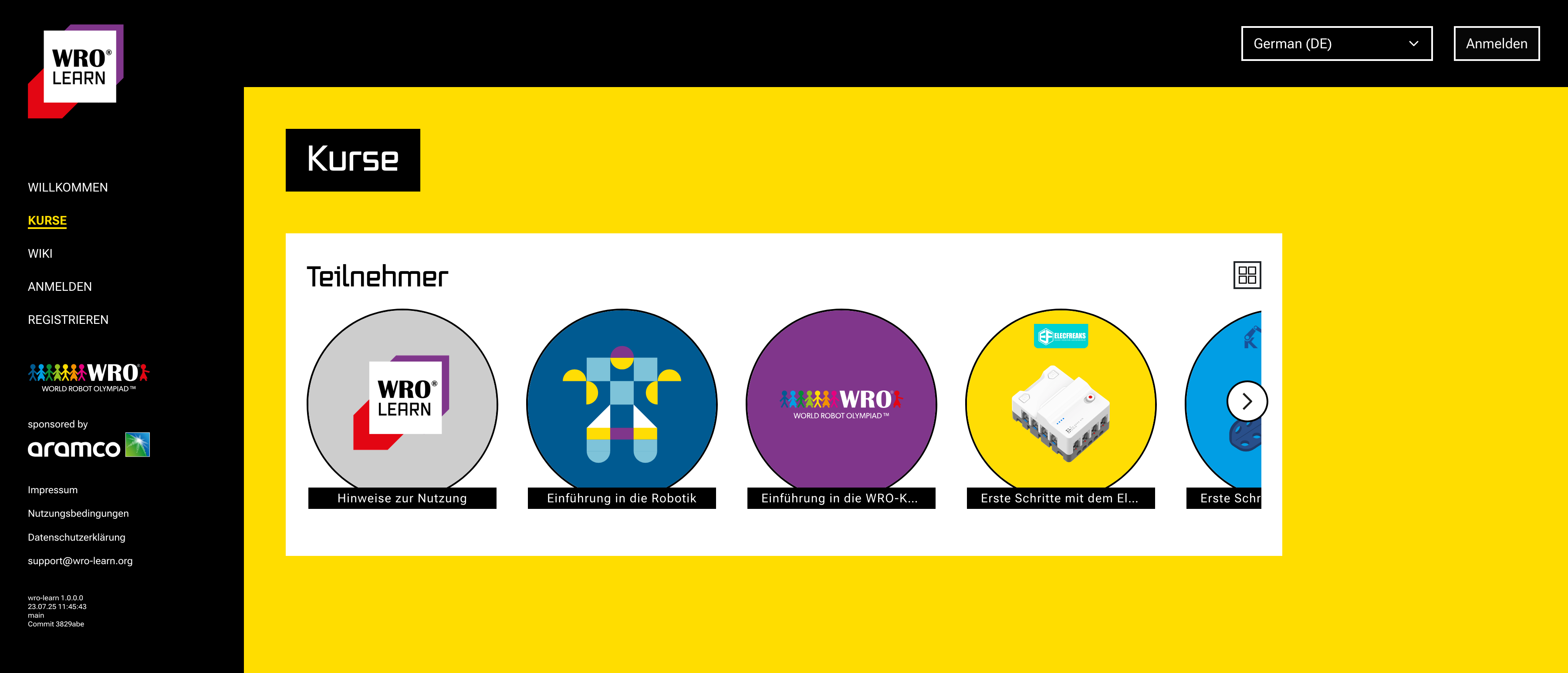 Nutzt die Plattform für eure WRO-Vorbereitung. Wenn ihr Feedback zur Plattform habt, könnt ihr direkt dem internationalen Support unter support [at] wro-learn [punkt] org schreiben.